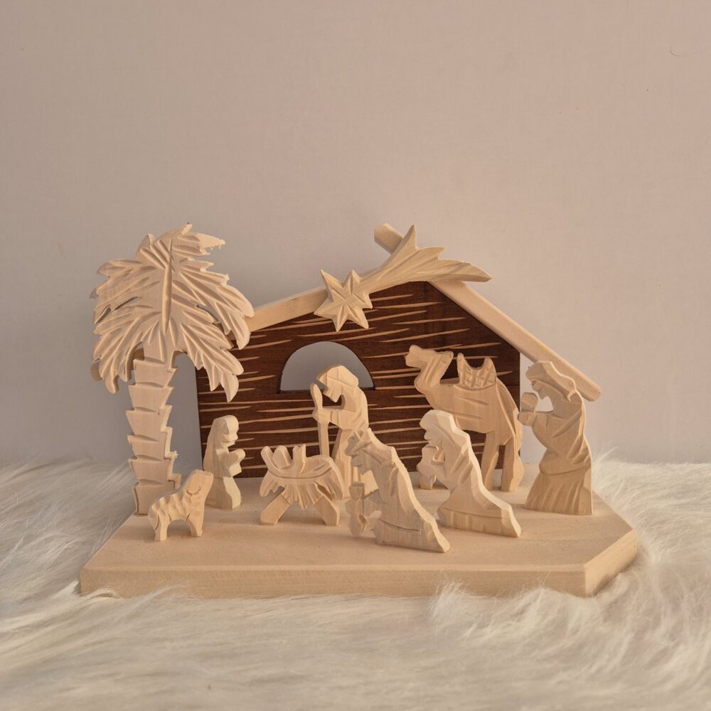 Szopka Bożonarodzeniowa ręcznie rzeźbiona na brzozie mała