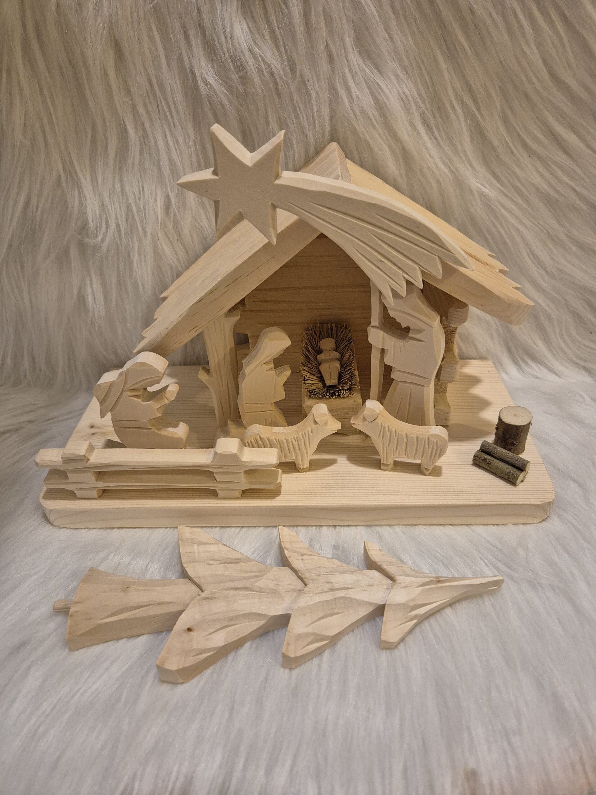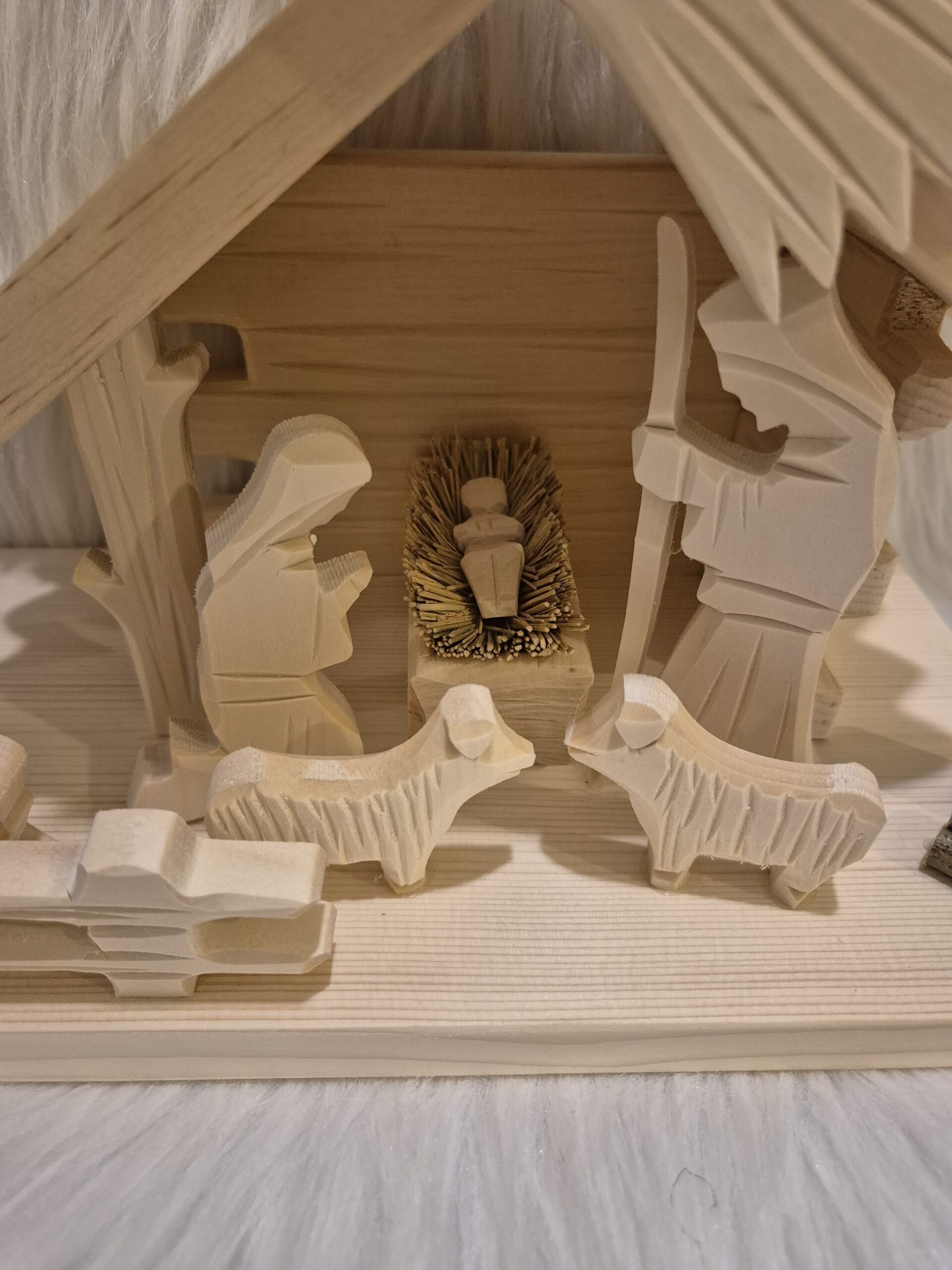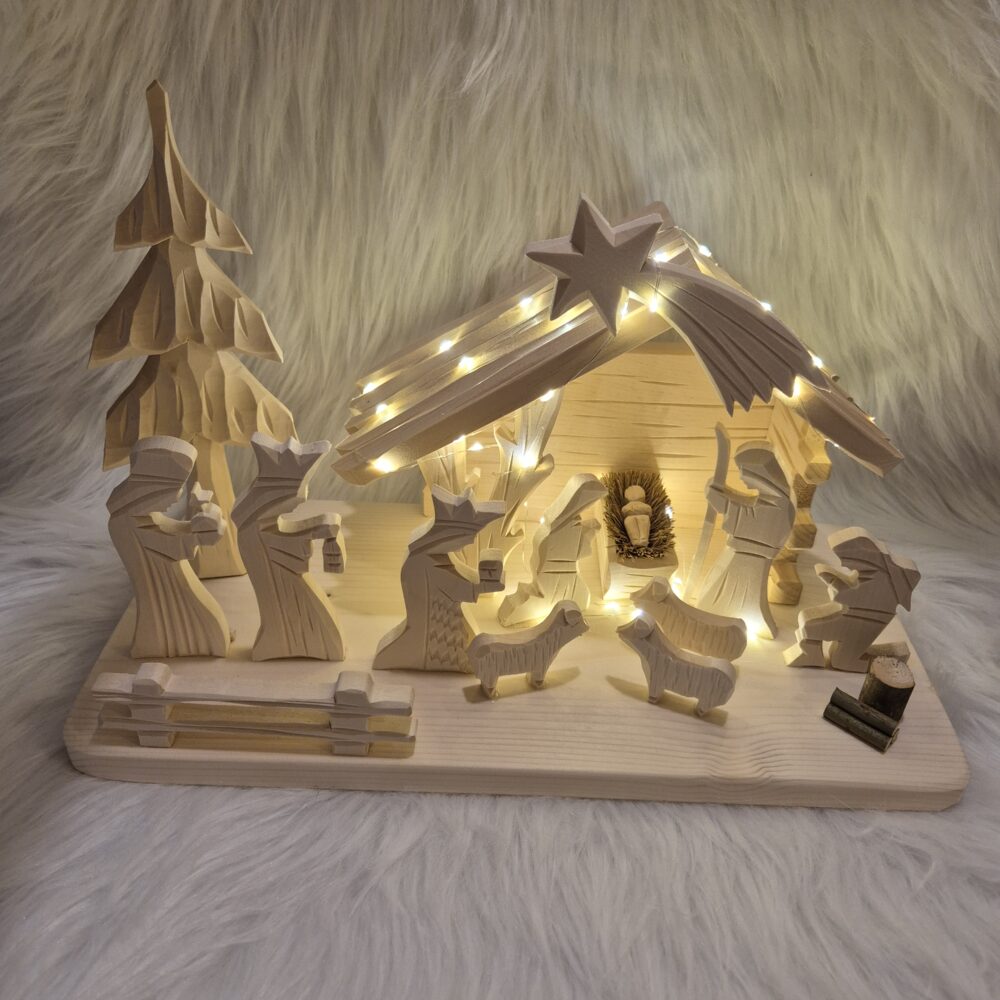 Szopka została ręcznie wykonana z wysokiej jakości drzewa, dzięki czemu posłuży na wiele lat, została wykonana z dbałością o każdy detal.